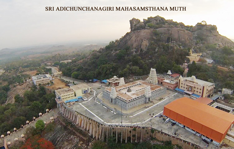 Sri ADICHUNCHANAGIRI MAHASAMSTHANA is situated on a rocky hill at an altitude of about 3,300 ft., above sea level, 110 kms west of Bangalore, the capital of Karnataka, India.